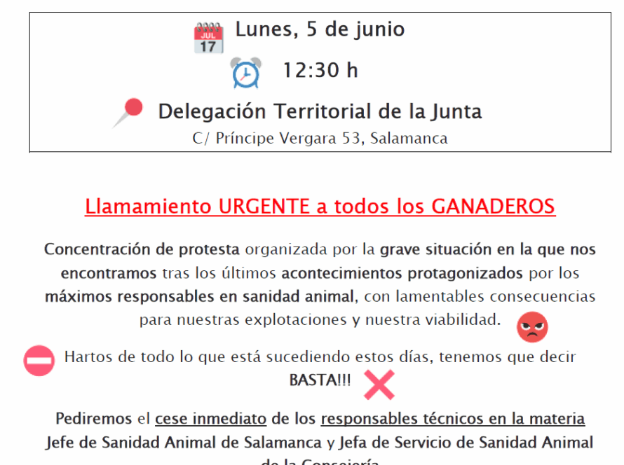 Otras publicaciones30/05/2023Unión por la Ganadería se concentrará el 5 de junio frente a la Delegación Territorial de la Junta en Salamanca
