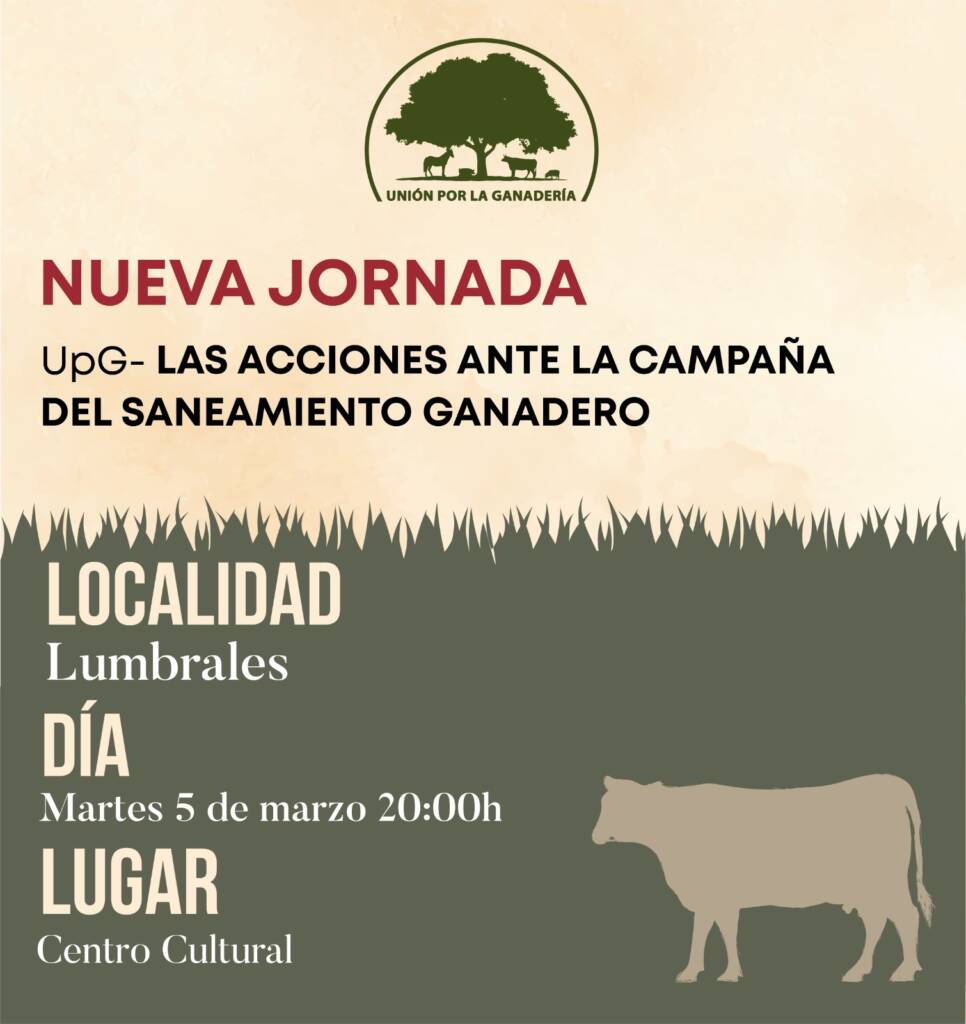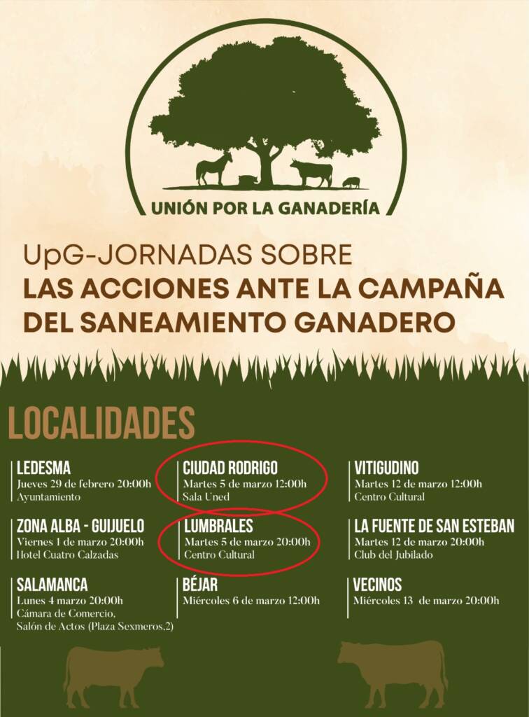 Hoy, Unión por la Ganadería (UpG) estárá en Ciudad Rodrigo a las 12 horas y por la tarde en Lumbrales, a las 20 h, para informar a los ganaderos sobre las acciones ante la campaña de saneamiento ganadero.