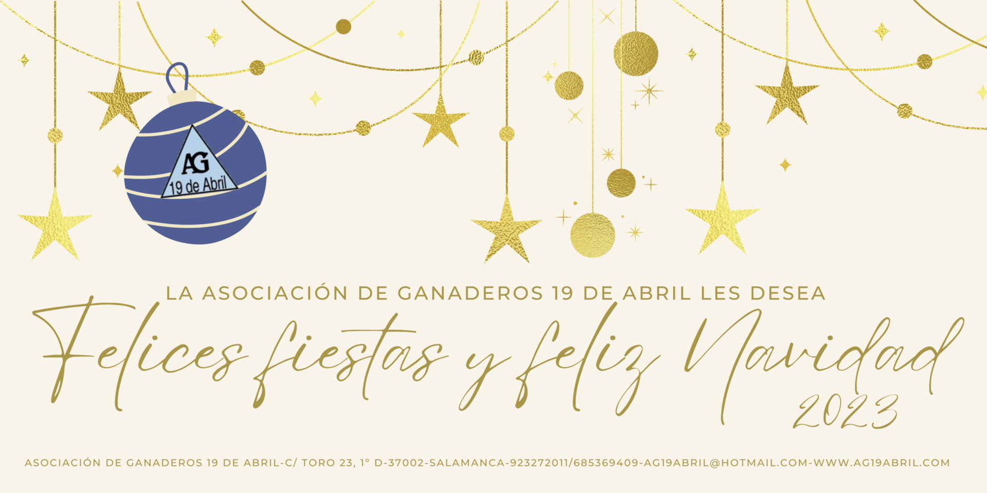Desde la Asociación de Ganaderos 19 de Abril les deseamos unas felices fiestas y un próspero año nuevo 2023!