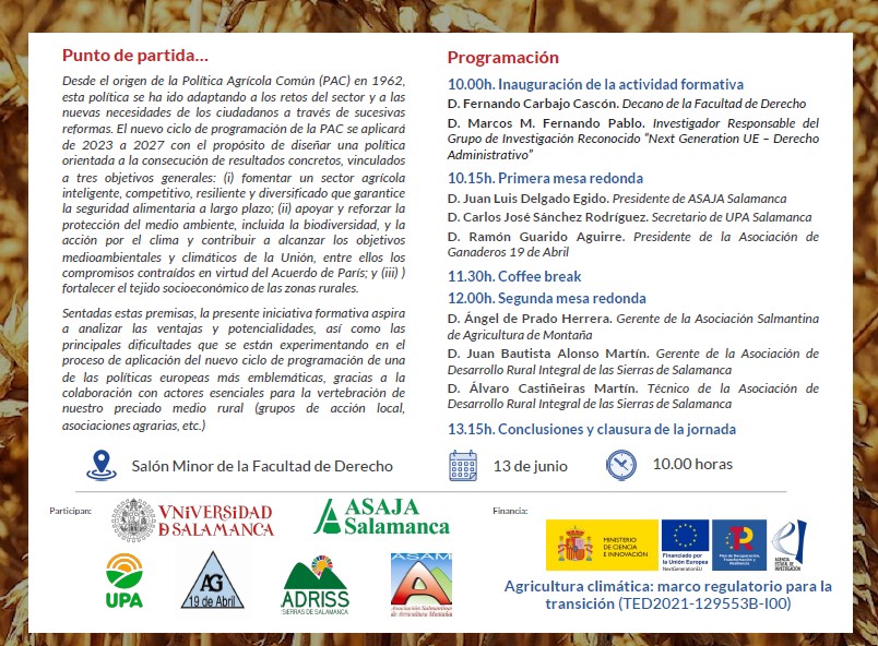 Hoy, hemos participado en la Jornada de debate de la nueva Política Agrícola Común con actores del territorio organizada por la Universidad de Salamanca.