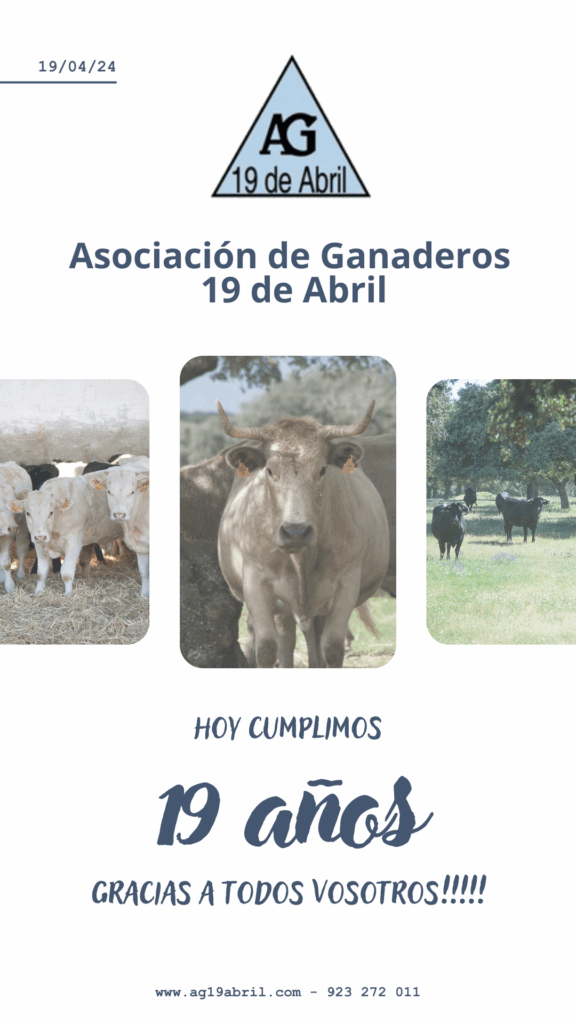 La 19 de Abril nació espontáneamente en la provincia de Salamanca en el año 2005 con la finalidad de buscar y exigir soluciones a los graves problemas de sanidad animal existentes en determinadas zonas ganaderas de la provincia de Salamanca por brucelosis. 19 de años después, otra enfermedad, la tuberculosis, es uno de nuestros principales problemas.