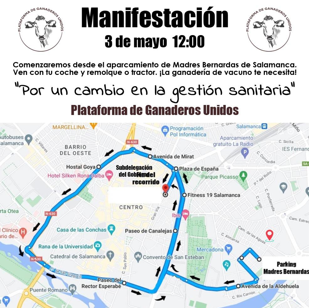Ayer, cientos de ganaderos nos dimos cita por las calles de Salamanca en una sonora protesta que inundó las principales vías de la ciudad de coches, furgonetas, camiones, tractores,… como protesta y hartos ya de la situación sanitaria de las explotaciones de vacuno, pidiendo un cambio en la gestión sanitaria de la Tuberculosis.