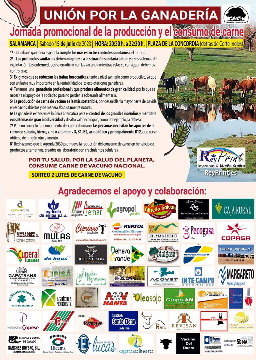 El colectivo Unión por la Ganadería formado a día de hoy por una treintena de Asociaciones, Cooperativas, Organizaciones Agrarias, ganaderos, etc., organiza una Jornada de promoción y degustación de carne de vacuno con el objetivo de realzar y dar a conocer el valor de la carne y la producción ganadera entre la sociedad.