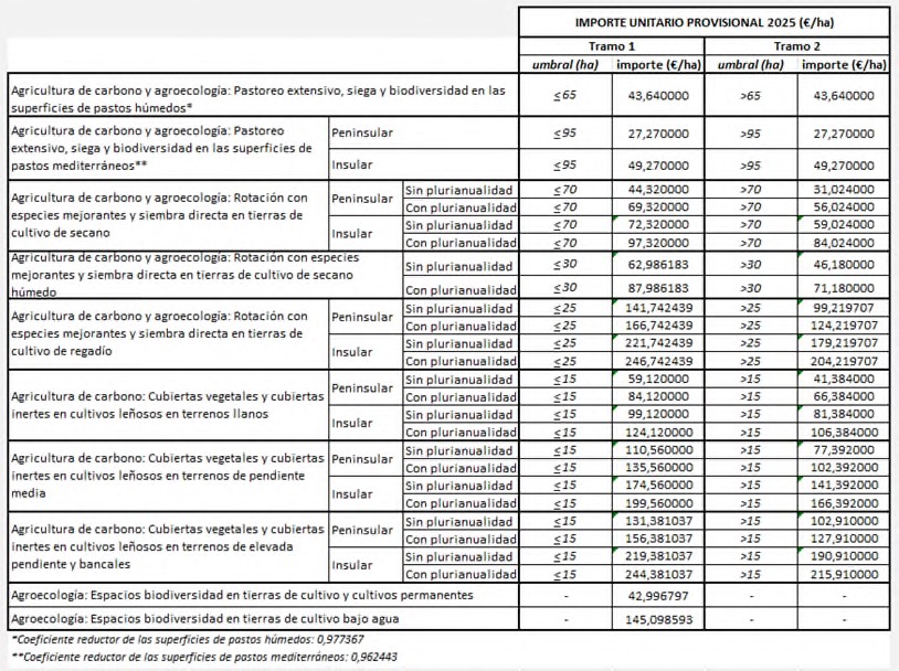 Ya se han publicado los importes unitarios provisionales de la campaña PAC 2025 para ecorregímenes, ayudas asociadas a la ganadería y ayudas asociadas a superficies.